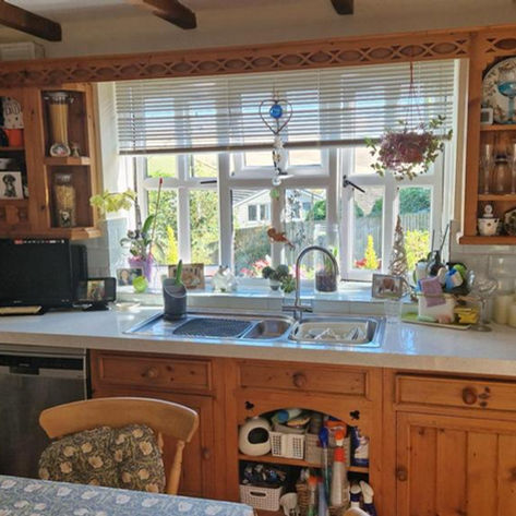 This kitchen was looking it’s age… varnished oak with green vinyl tops.